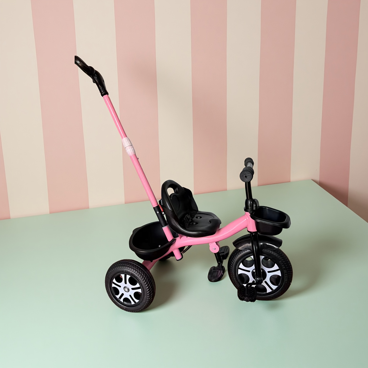 SvgBoMit Kids' Thickened Frame Adjustable Push Bar Tricycle Upgraded Comfort Backrest Seat Pedal Bike Detachable Push Bar Dual-Use Tricycle Children's Outdoor Push Cart Boy\u002FGirl Gift with Bell And Ribbon